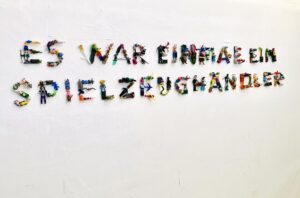 Bei „Es war einmal ein Spielzeughändler …“ handelt es sich um ein Projekt, das sich noch in Arbeit befindet. Ziel ist es, den Satz: Es war einmal ein Spielzeughändler, der hieß Markus und nahm mit sich alles Spielzeug aus dieser Welt aus Buchstaben, die aus Spielzeugen bestehen, zu gestalten. Es ist ein Satz aus dem Buch „Hundejahre“ von Günter Grass. Gemeint ist die Figur des jüdischen Spielzeughändlers, Sigismund Markus, der von den Nazis gezwungen wurde, Selbstmord zu begehen.