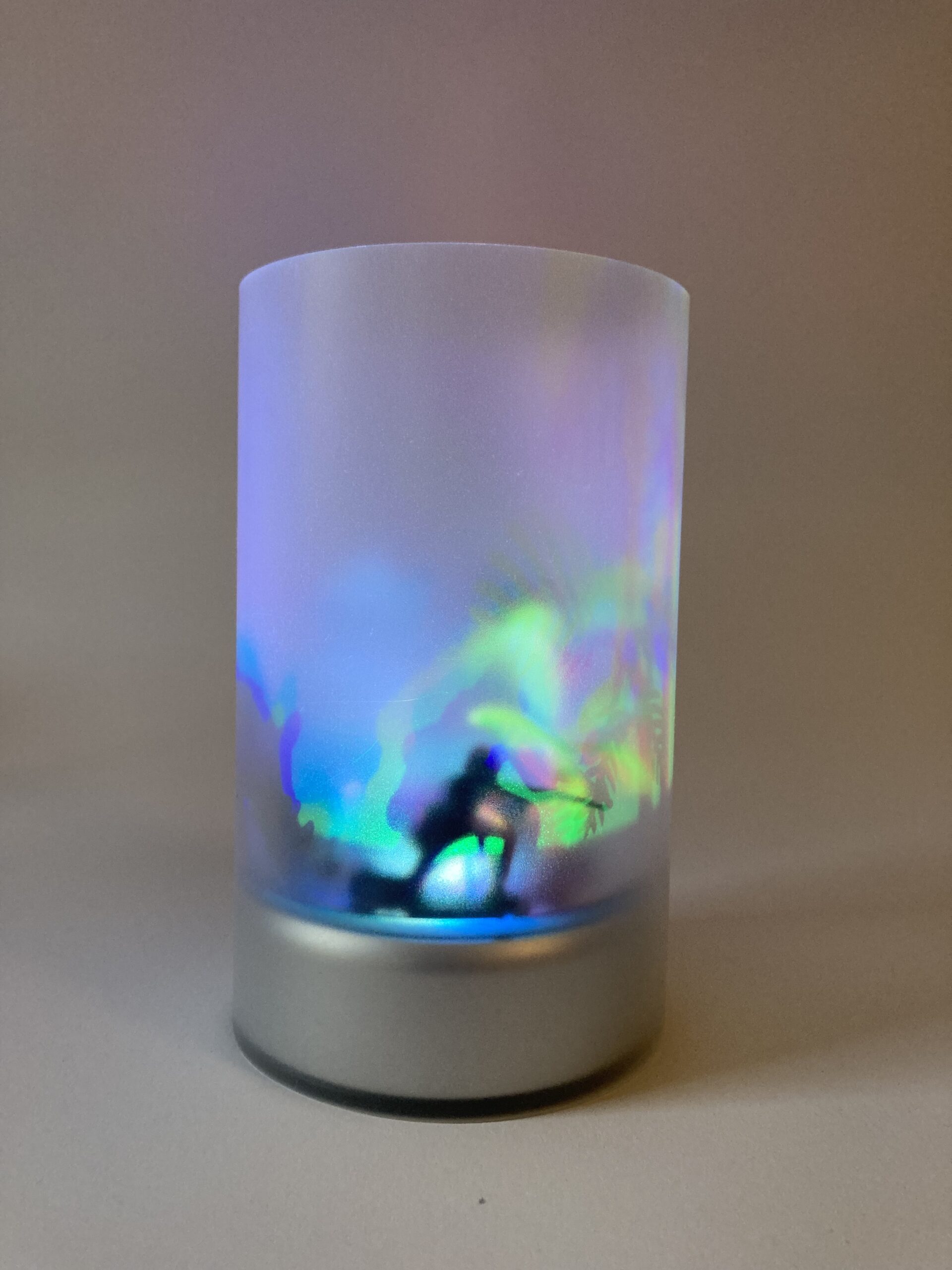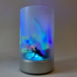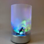 Die in der Geschichte vorkommende Wand des Kinderzimmers, die immer wieder die gleichen bewegten, bunten Bilder abspielt, hat mich zu dieser Serie von kinetischen Lichtobjekten inspiriert.